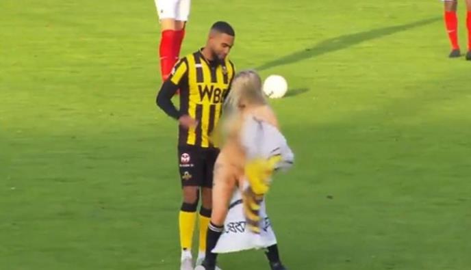 Jedna navijačica ukrala je šou fudbalerima oba tima. Zanosna plavuša je potpuno gola utrčala na teren i počela da trči. Zastala je kod jednog fudbalera i počela da mu se "nabacuje". Šokirani igrač nije znao šta ga je snašlo.
