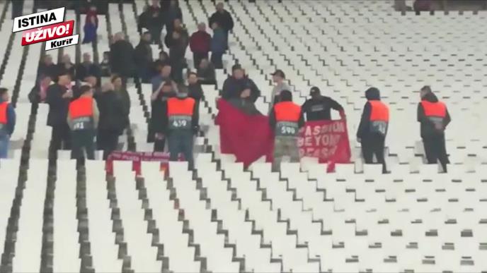 Fanovi crvenih sa "Enfilda" odmah su se suočili sa zabranom - nije im bilo dozvoljeno da zastave okače na ogradu tribine, pa su počeli da ih ređaju po stolicama.