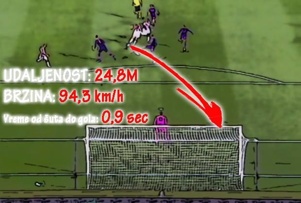 A onda su se pozabavili statistikom Zvezdinog drugog gola i mnogobrojnim parametrima vezanim za ovaj šut. Šut je upućen sa tačno 24.8 metara, brzinom od 94.3 kilometara na čas, a lopta je za nepunu sekundu već bila u mreži!