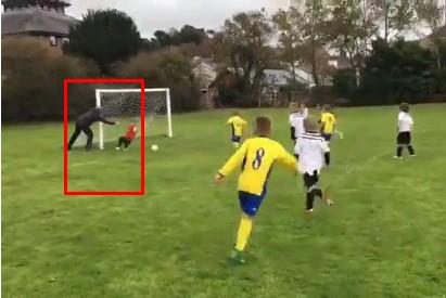 Jedan roditelj je pomno pratio meč svog sina, koji je golman u jednoj ekipi. Kada je video da će njegov naslednik da primi gol, prišao je kod stative i gurnuo ga na loptu.
