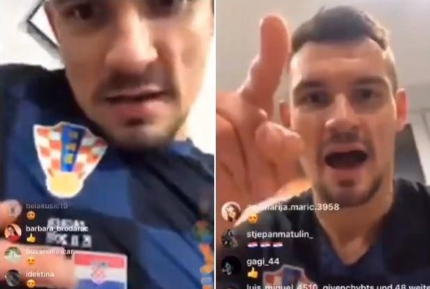 "Drago mi je, ubio sam ga laktom! Aaa.. ha! 3:2, pa ti pričaj na konferenciji majstore! To su pičke obične", rekao je Lovren, a onda je rukom prekrio grb Španije na dresu i prstom pokazao zastavu Hrvatske: