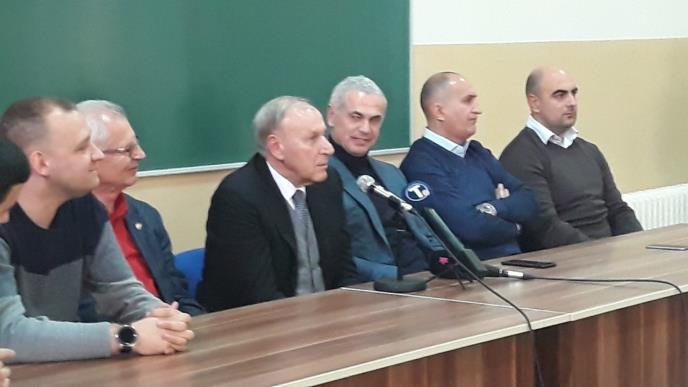 Džajić, Zvezdan Terzić i Mitar Mrkela u amfiteatru Fakulteta tehničkih nauka u Kosovskoj Mitrovici sastali su se sa predstavnicima studenata i sportskih klubova sa severa KiM.