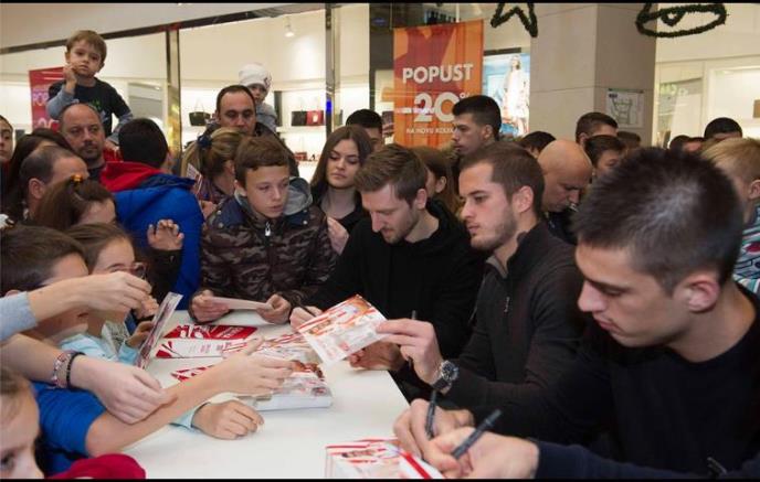 Brojna crveno-bela publika dočekala je kvartet srpskog šampiona sa oduševljenjem, a naši igrači odužili su im se strpljivo ispunjavajući želje za autogramima i fotografijama.