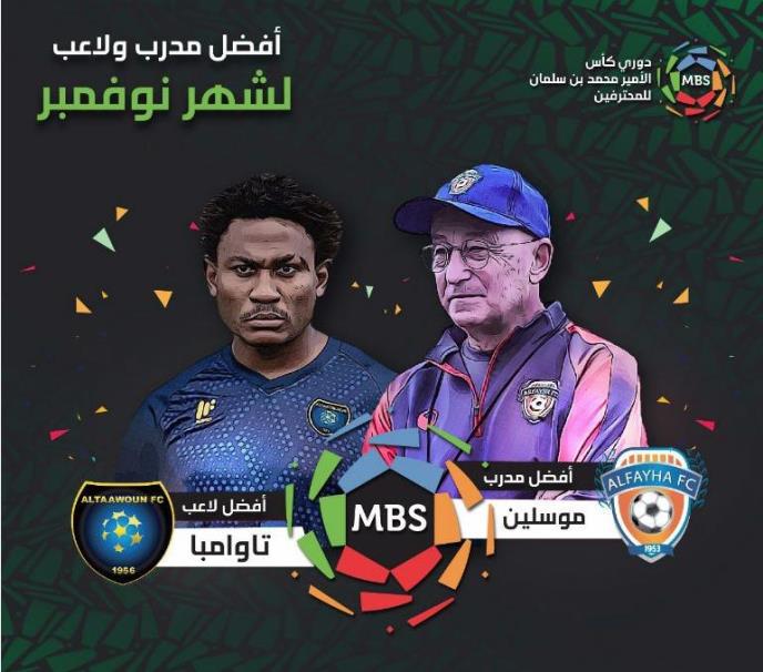 Muslin, koji je sada na klupi desetoplasirane Al Fejhe je izabran za najboljeg trenera prtošlog meseca, dok je kamerunski napadač, koji nastupa za petoplasirani Al Tavon, trenutno prvi strelac lige sa osam golova posle deset kola.