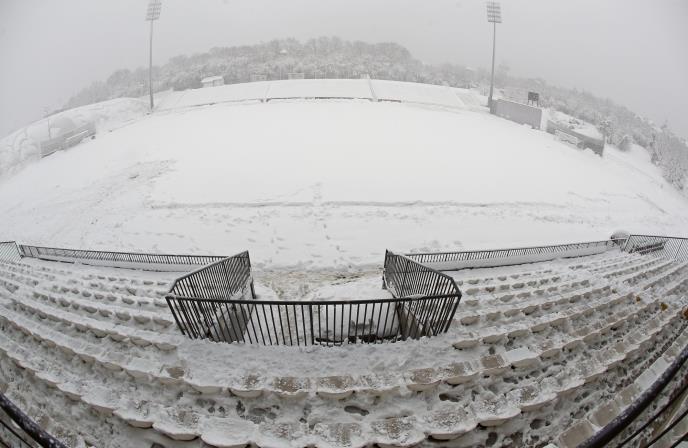 Uslovi za igru su nemogući, pa su se sudije delegat i predstavnici oba tima usaglasili da od odigravanja meča danas nema ništa.