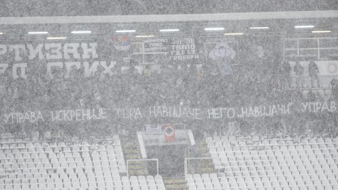 Ali, bar su se Grobari dobro zabavili. Kad već meč nije bio atraktivan, onda su snežne čarolije bila dobra zanimacija...