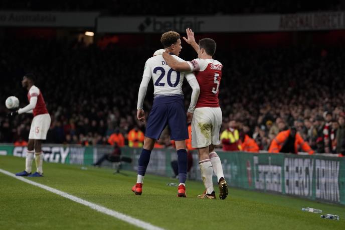 Navijači Arsenala pogodili su fudbalera Totenhema Dele Alija flašom u glavu tokom večerašnjeg duela ta dva londonska tima u četvrtfinalu Liga kupa Engleske.