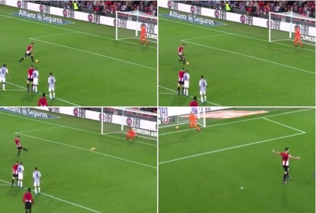 37-godišnji centarfor je u 45. minutu doneo prednost svom timu sa bele tačke, a način na koji je izveo jedanaesterac oduševio je fudbalski svet. "Iz kolena", bez zaleta, Aduriz je hiruški precizno smestio loptu u mrežu Valjadolida.