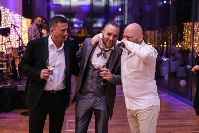 Srpski fudbaler i povremeni reprezentativac Orlova Aleksandar Katai je sa svojom prijateljima i porodicom proslavio krštenje sina Leona.