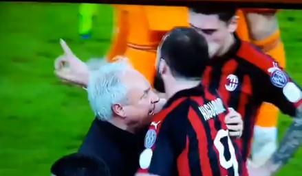 "Rosoneri" su bili nezadovoljni što im sudija Banti u finišu nije dosudio penal, pa je trener Đenaro Gatuzo po završetku meča odmah otišao do arbitra da se raspravi.