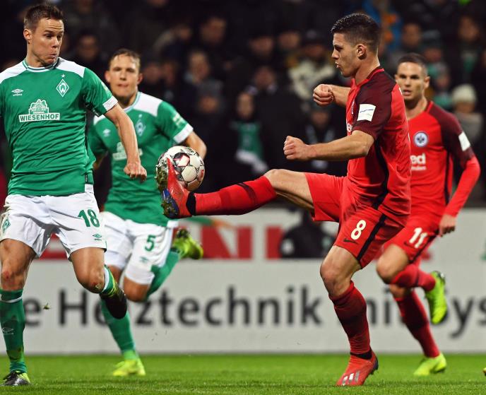 Fudbaleri Verdera i Ajntrahta iz Frankfurta odigrali su večeras u Bremenu nerešeno 2:2, u utakmici 19. kola Bundeslige.