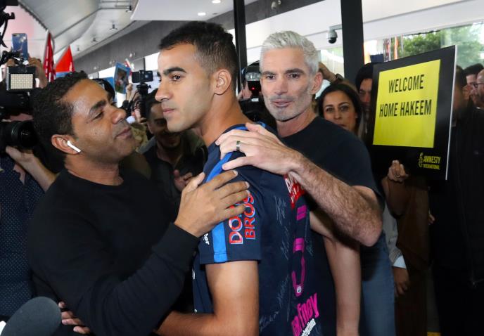 Fudbalera, izbeglicu iz Bahreina, Hakema el Araibija danas je dočekalo na stotine ljudi na aerodromu u Melburnu, nakon što je pušten iz pritvora na Tajlandu, gde je proveo tri meseca.