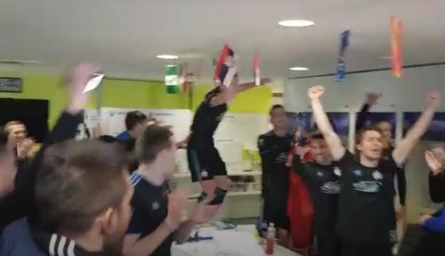 Fudbaleri Dinama proslavili su plasman u osminu finala Lige Evrope, a u svlačionici "modrih", između ostalih, zavijorila se i zastava Srbije.