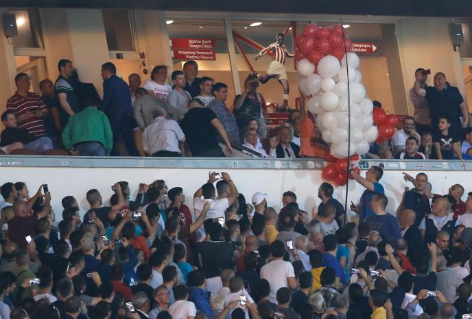 Ogromni helijumski falus visio je, početkom drugog poluvremena, nad njihovim glavama u svečanoj loži koja nosi ime jednog od najvećih sportista i fudbalera Crvene zvezde.