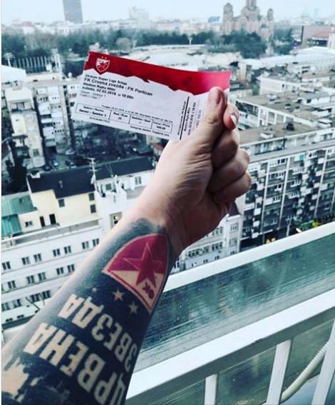 Veliku pažnju privukla je jedna fotografija navijača Crvene zvezde. On ponosno drži kartu za meč, a na ruci ima brutalnu tetovažu posvećenu voljenom klubu.