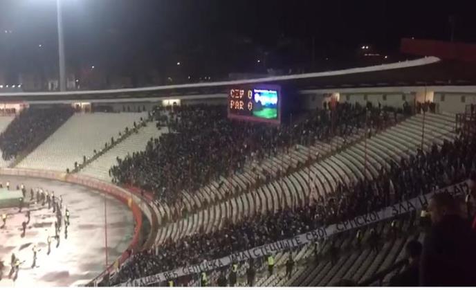 Navijači Partizana smešteni su u odvojenim sektorima na stadionu "Rajko Mitić" kako nebi došlo do međusobnog fizičkog obračuna!