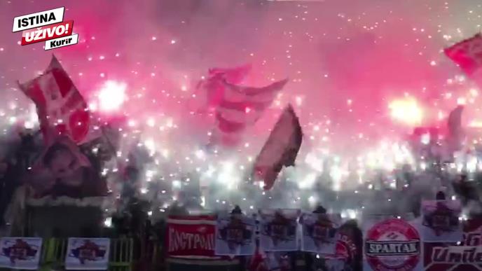 Navijači Crvene zvezde su početkom drugog poluvremena 159. večitog derbija sa Partizanom napravili bakljadu.