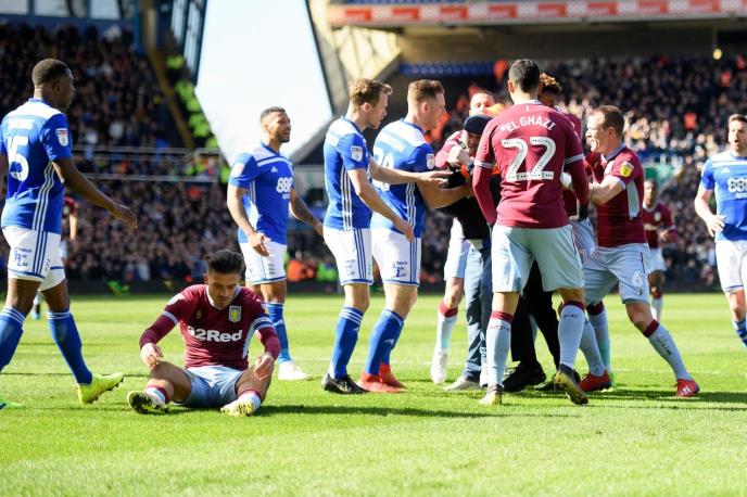 Navijač Birmingema utrčao je u teren tokom utakmice u Čempionšipu i udario kapitena Aston Vile Džeka Griliša.