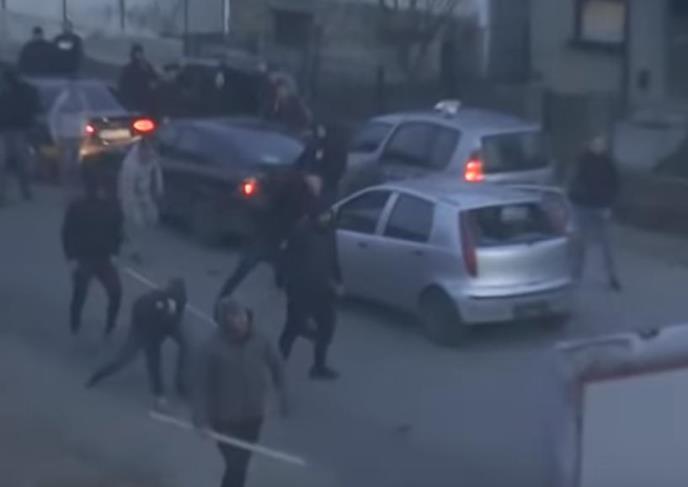Na videu vidimo kako su u tuči korišćene duge motke, a huligani su se međusobno gađali kamenjem na očigled policije i žandarmerije.