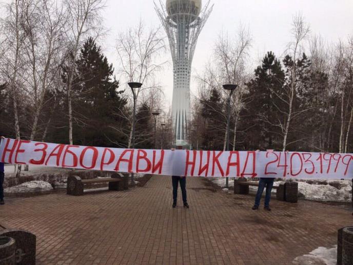 Uoči utakmice protiv Kazahstana u Astani navijači Rusije razvili su transparent na kom piše: "Ne zaboravi nikad 24.3.1999".