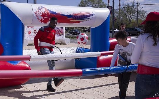 Kvartet šampiona Srbije ovom prilikom fotografisao se sa prisutnima, delio autograme i igrao nesvakidašnji stoni fudbal.
