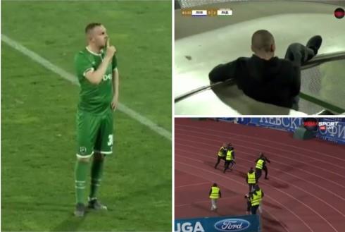 Fudbaler Ludogoreca Kuzmin Moci postigao je sa bele tačke gol za 2:0, zatim je otišao do tribine gde su najvatrenije pristalice Levskog, raširio ruke i proslavio gol. Ova provokacija razbesnela je navijače, ali igrače domaćeg tima.