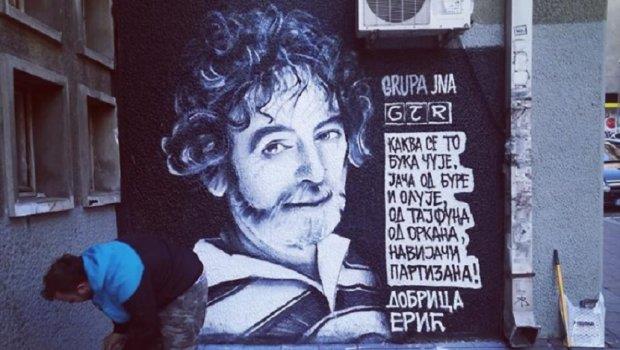 Poznati srpski pesnik Dobrica Erić preminuo je 29. marta u 83. godini života, a samo dvadesetak dana kasnije poznata grupa navijača Grobarski treš romantizam je uradila mural ovoj legendi.