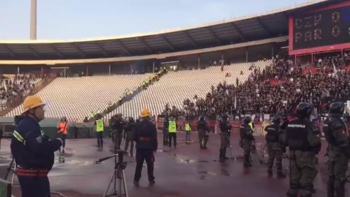 Kao po dogovoru, sa svih strana na kojima su smeštene pristalice crno-belih, leteli su i pucali topovski udari.