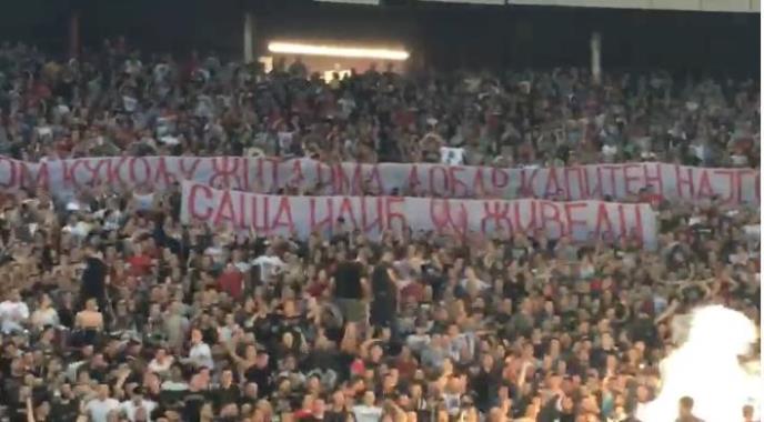 Najverniji navijači Zvezde sa severne tribine razvili su transparent kojim su pozdravili legendarnog kapitena Partizana Sašu Ilića.