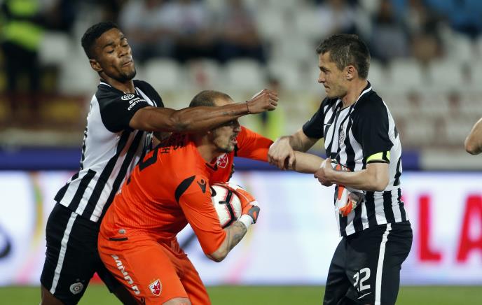 Rikardo i Saša Ilić su pokušali da Borjanu otmu loptu iz ruke, došlo je do koškanja, da bi na kraju golman Zvezde u glavu udario napadača Partizana.