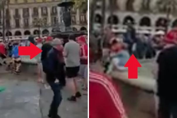NAVIJAČI LIVERPULA BACILI DEKU U FONTANU: Siroti turista nije znao šta ga je snašlo! Mokrog do gole kože ismevali pijani navijači Redsa! (VIDEO)