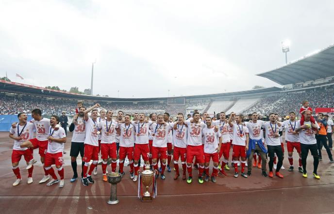 Fudbaleri Crvene zvezde, uoči meč protiv Napretka, proslavili su večeras 30. jubilarnu titulu šampiona države pred više od 30.000 gledalaca na stadionu "Rajko Mitić".