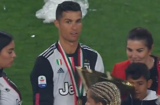Portugalski fudbaler Kristijano Ronaldo (34) nije krio oduševljenje kada je podigao pehar namenjen šampionu Italije.