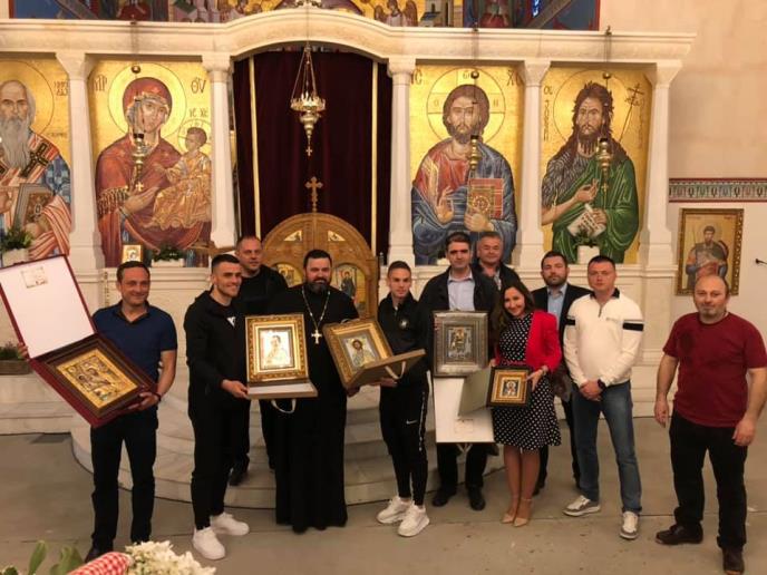 Dvojicu srpskih reprezentativaca primio je paroh Simon Turkić, a u hramu je bio i generalni konzul Republike Srbije u Frankfurtu Branko Radovanović.