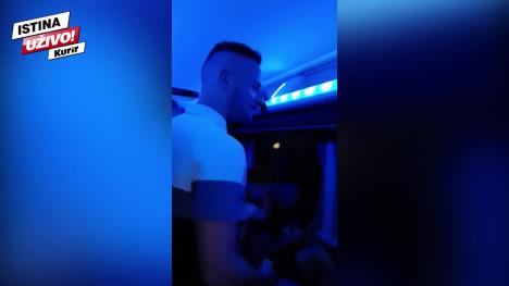 On je uneo pehar Kupa Srbije u autobus Partizana gde se uveliko slavilo uz narodne i turbofolk hitove.