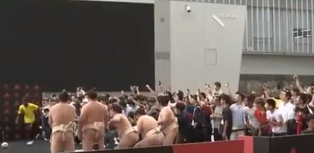 Pogba je u "zemlji izlazećeg sunca" dobio priliku da izvede slobodan udarac preko najčudnijeg "živog zida" ikada - sastavljenog od sumo rvača!