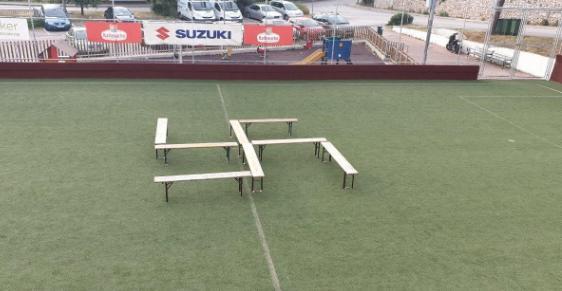 Na jednom fudbalskom terenu u Hladnici kod Dubrovnika osvanuo je kukasti krst koji je napravljen od kluba!