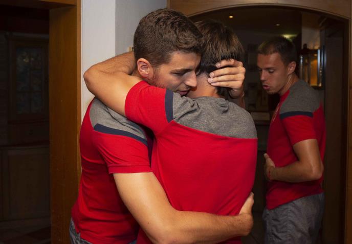 Defanzivac crveno-belih lepo je u austrijskom Vindišgarstenu dočekan od strane svojih saigrača, koji će mu sigurno ohrabrujućim rečima pomoći da što pre zaboravi neuspeh na EP u Italiji i San Marinu. Palo je i grljenje sa Vujadinom Savićem i Filipom Stojkovićem.