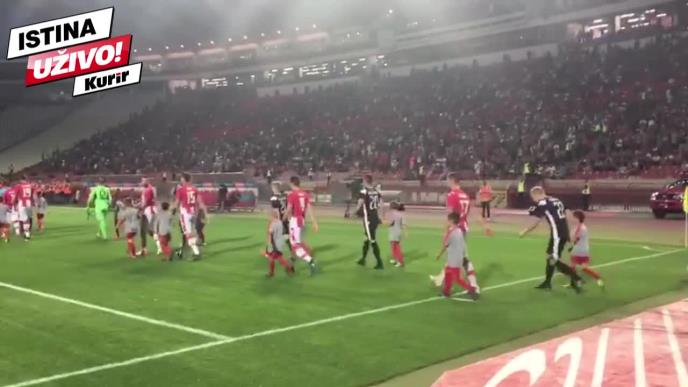 Veliki broj navijača dočekao je aplauzima crno-bele fudbalere preilikom izlaska na teren Marakane.
