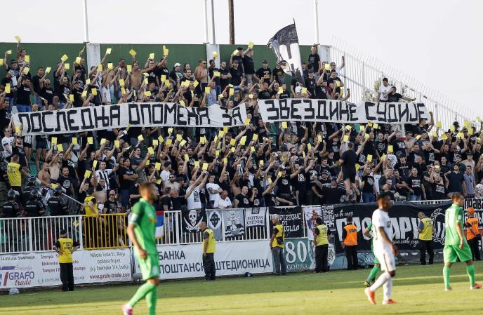 Podsetimo, na početku meča do prekida je došlo kada je jedna frakcija "Grobara" pokušala da skine drugoj transparent: