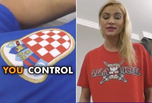 Na krevetu leži kolega u dresu reprezentacije Hrvatske, a Čeri Kis je došla da ga nauči lekciju o tome za koji tim treba da navija.