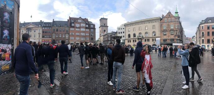 Navijači Crvene zvezde okupljaju se na Trgu Gameltorv u centru Kopenhagena.