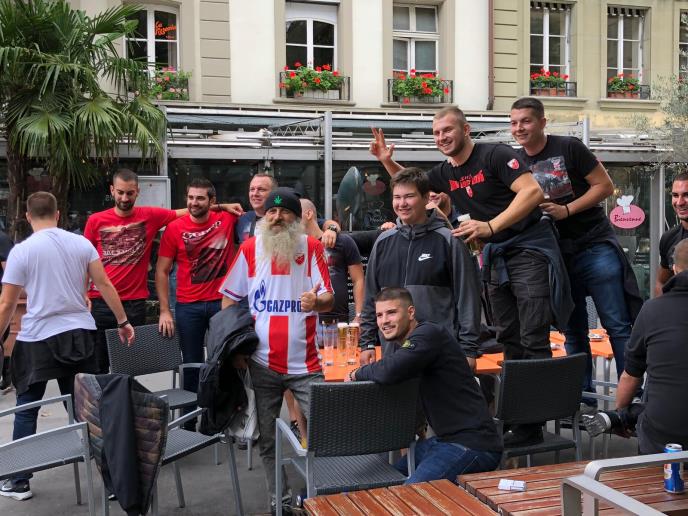Navijači Crvene zvezde od ranog jutra su zaposeli centralne gradske ulice u Bernu gde crveno-beli večeras od 21 sat igraju prvu utakmicu plej-ofa sa Jang Bojsom.
