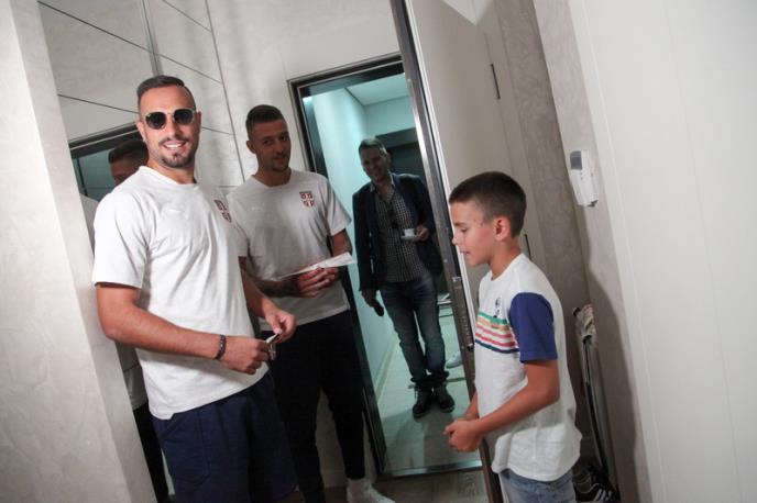 Prvih pet fudbalskih zaljubljenika koji su tačno odgovorili, dobili su poklon Fudbalskog saveza Srbije u vidu ulaznica i dresa reprezentacije, ali pravo iznenađenje je tek (u)sledilo. Naime, jedno zvono na vratima ili pak trenutak da se nađeš na pravom mestu kao slučajni prolaznik, može nekad da ti ulepša dan a za to su se danas potrudili naši reprezentativci Sergej Milinković-Savić i Nikola Maksimović.