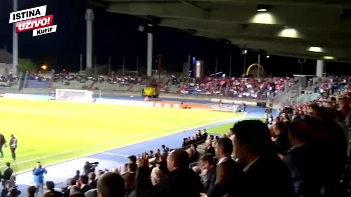 Skoro čitav stadion ustao je na noge kada je krenula himna Srbije - Bože pravde.