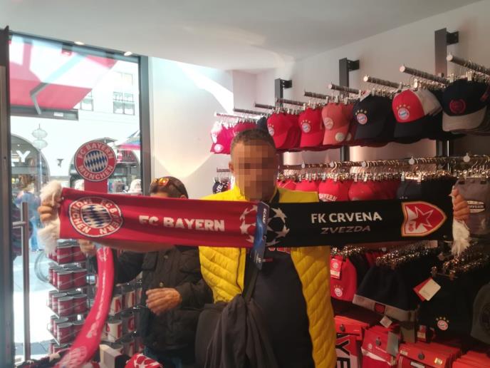 Gužva je bila i ispred šopa sa obeležjima Bajerna. Razlog - Delije su želele da kupe za uspomenu šal, pola Bajern, pola Zvezda. Međutim...