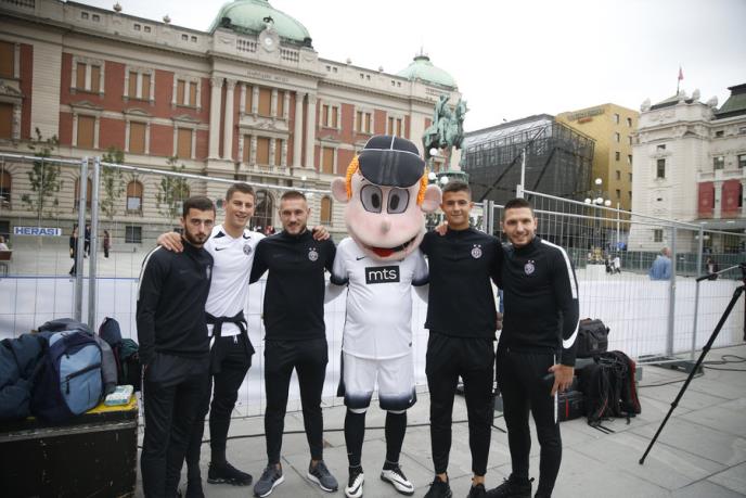 Dok se prvih osamnaest priprema za večerašnju utakmicu sa Az Alkmarom, naši momci koji neće biti starteri u Ligi Evrope posetili su beogradski festival fudbala gde su se družili sa najmlađim fanovima.