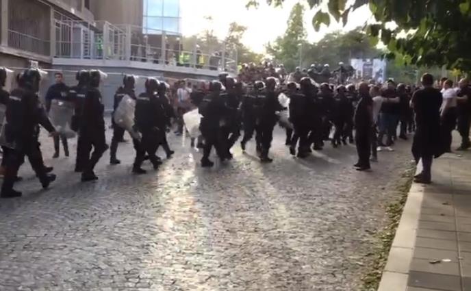 Jake snage policije i Žandarmerije raspoređene su u širokom krugu oko stadiona Partizana kako bi sprečili eventualne susrete navijača i moguće incidente.