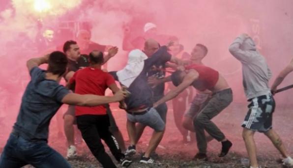 Velika tuča dve grupe huligana zabeležena je pred sam početak utakmice, a da je bilo žestoko, vidi se i na samom snimku.