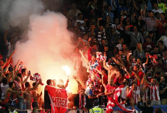 Navijači Olimpijakosa zaustavili su danas saobraćaj na auto-put nadomak Beograda.